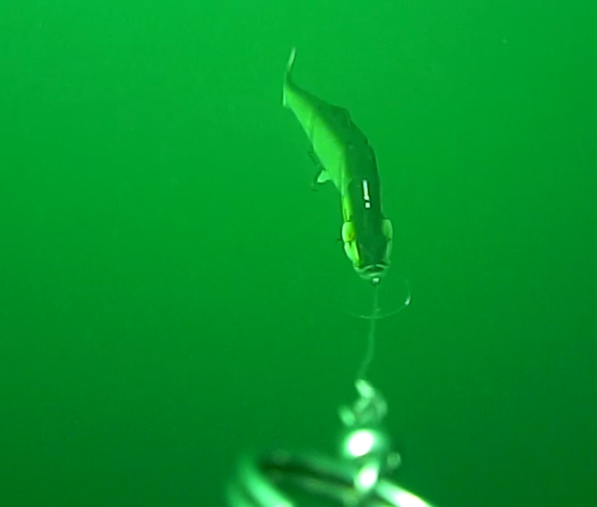 richtig, da die Hechte zur Zeit sehr tief stehen, fische ich bei ca. 8-10m. Und dann das dunkle Wetter, da kommt natürlich nicht viel Licht hin.