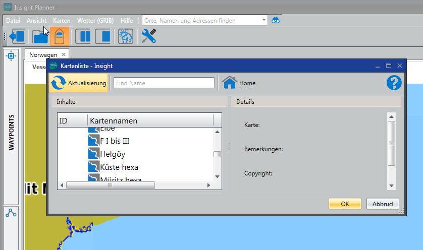 Karten >>> Karte öffnen - zum Insight-Ordner navigieren, Karte auswählen