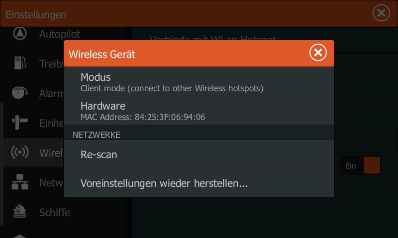 Dazu geht man unter Einstellungen auf Wireless und wählt dort "Wireless Gerät" aus.