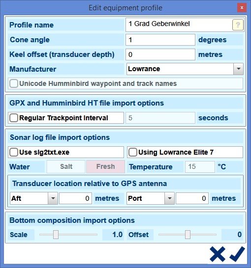 nachdem ein Echolot mit einem Geberwinkel von 1 Grad angelegt wurde und dann in das Projekt zu führen,