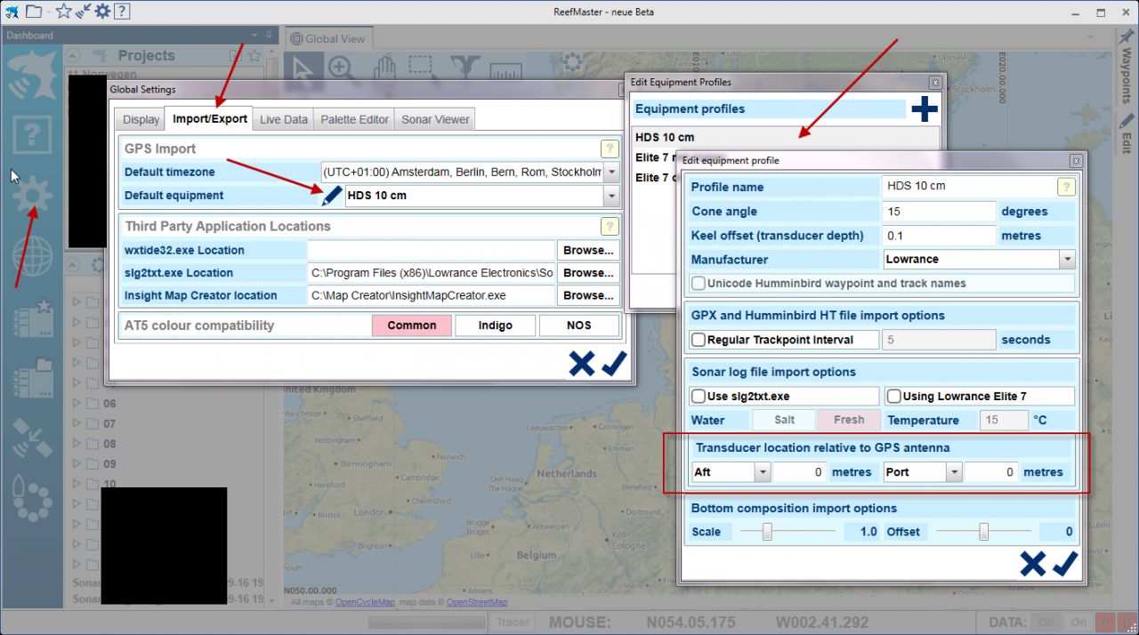 Aber wenn da ein Meter oder mehr dazwischen liegt, macht das schon was aus. Einstellungen siehe Bild. Da ist auch der Keeloffset zu finden.