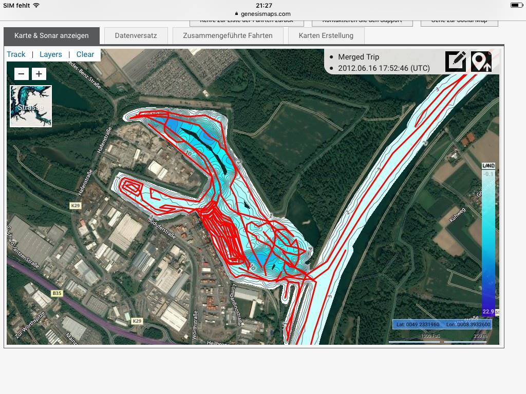 Das waren meine Trackspuren von deinem Beispielgewässer das ich damals gelotet hatte. Andere haben dann noch den Rest gelotet wobei man aber nicht weiß wer die waren und wie die aufgezeichnet haben also wie die abgefahren sind.