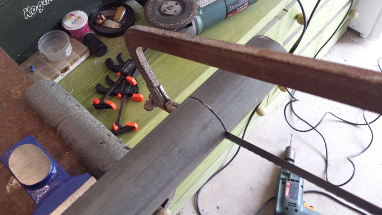 Ein altes Rohr, das ehemals als Antennenmast seinen Dienst verichtete, erschien mir als ideal, um damit die Grundhalterung zu bauen: