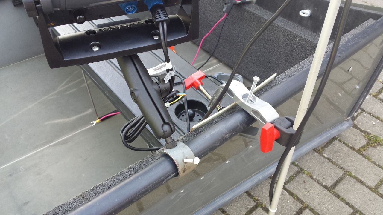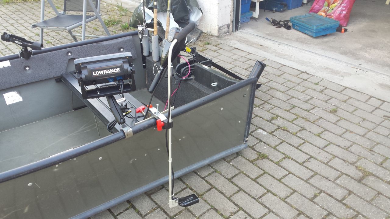 Etwas länger hab ich getüftelt, wie ich am besten den Geber und das Echolot anbringen kann. Die