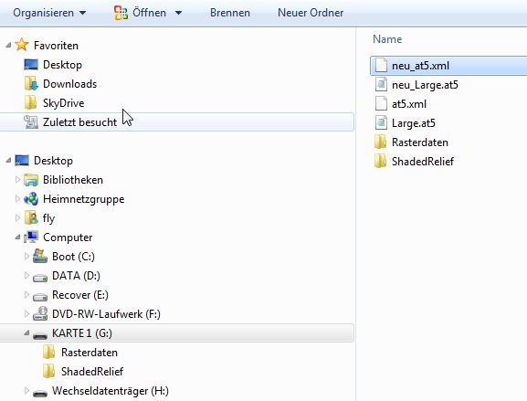 Ganz entscheidend ist die Lage der beiden xml und der dazugehörigen Vektor AT5 inkl. vor allem der Umbenennung je eines Satzes - Bild 3 (in den Ordnern findet sich je ein Rastersatz).