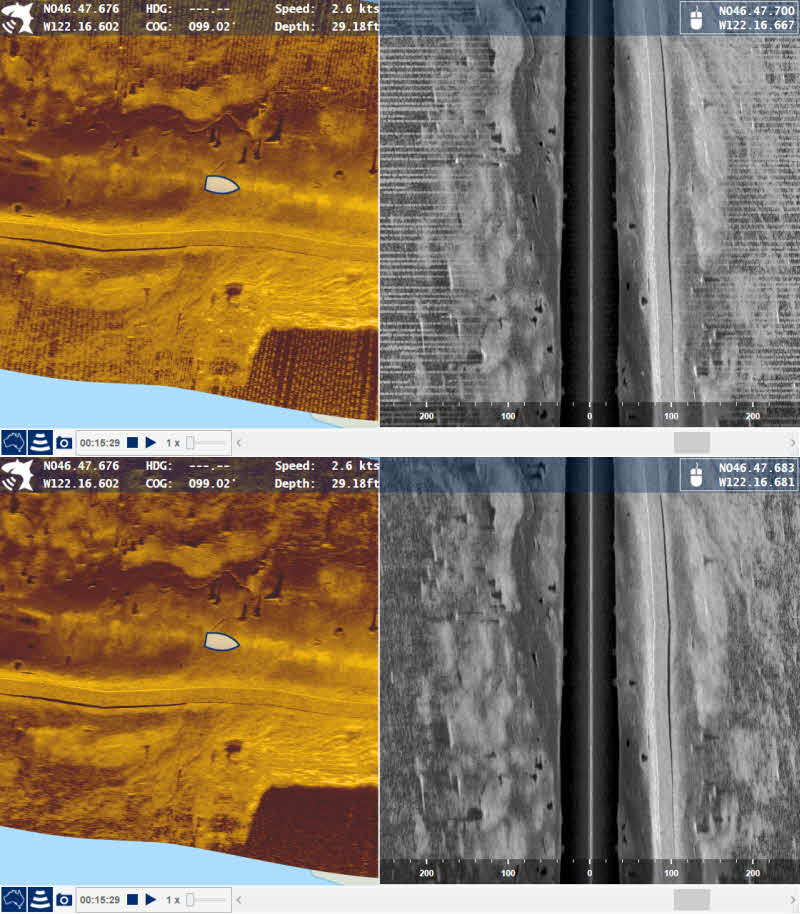 Die Karte oder die Position auf den Sonar Kanälen kann einfach mit der Maus