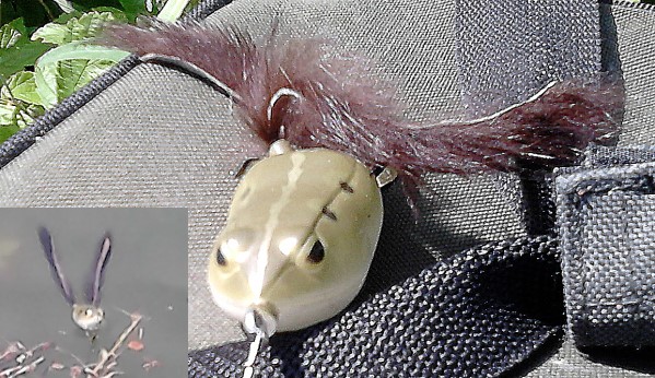 Sein Kopf schaut aus dem Wasser nur beim einholen senkt er sich durch das ruckartige Führen.