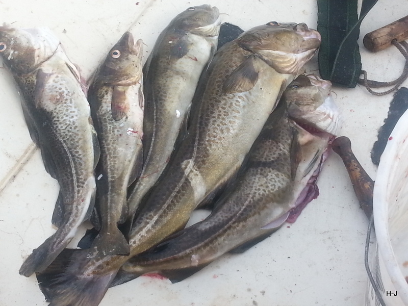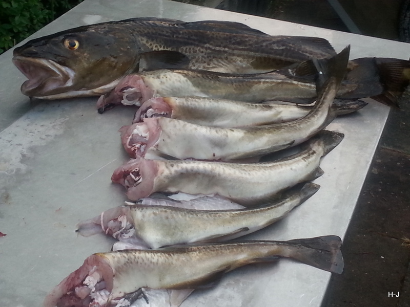 den Dorsch an die Angel, es waren auch recht große dabei, aber auch Kleine, die wieder schwimmen durften.