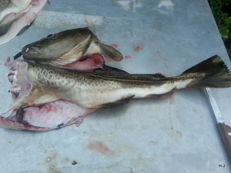 hier kann man schön sehen, dass der Kopf vom Dorsch, ein drittel des ganzen Fisch ausmacht.