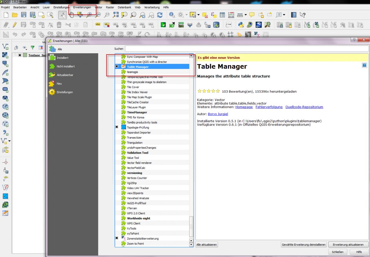- Der Tablemanager muss evtl. erst als Erweiterung hinzugefügt werden.