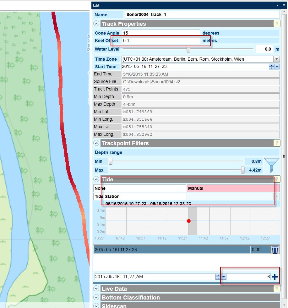 Gibt es die Möglichkeit, bereits geloggte, zur Karte hinzugefügte Daten bzw Tiefen und darauffolgende Logs so zueinander anzupassen, dass ich später wenn die Daten für eine vollständige Karte genügen, nicht mehr jeden Tag an dem aufgezeichnet wurde einzeln bearbeiten muss und eventuell einfach anhand des aktuellen Pegels einen Wert eingeben kann, der sich dann auf ALLE tracks auswirkt?