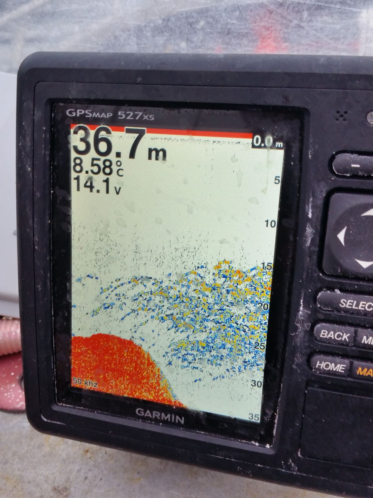 Diesmal aber mit Lowrance Echolot... der Geber vom Garmin zeigte keine Fische ..die standen aber 8m unterm Boot.......
