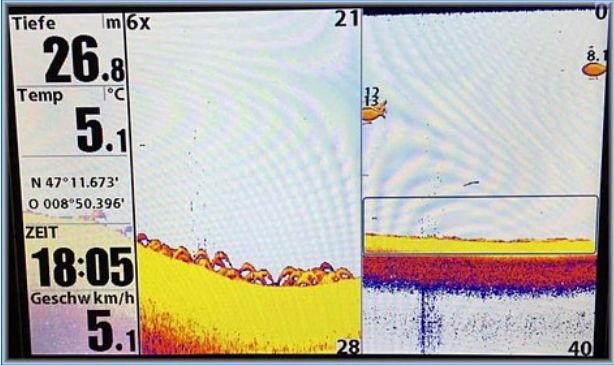 Gerade beim Renkenfischen werden bodennahe Fische oft nicht erkannt, weil sie eben außerhalb des 'sichtbaren Bereiches' des Echolotes liegen.