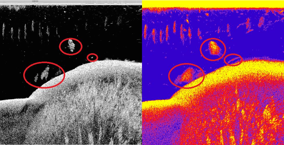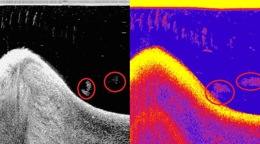 wo dann die Fische für die verwaschenen Echos gesorgt haben können.