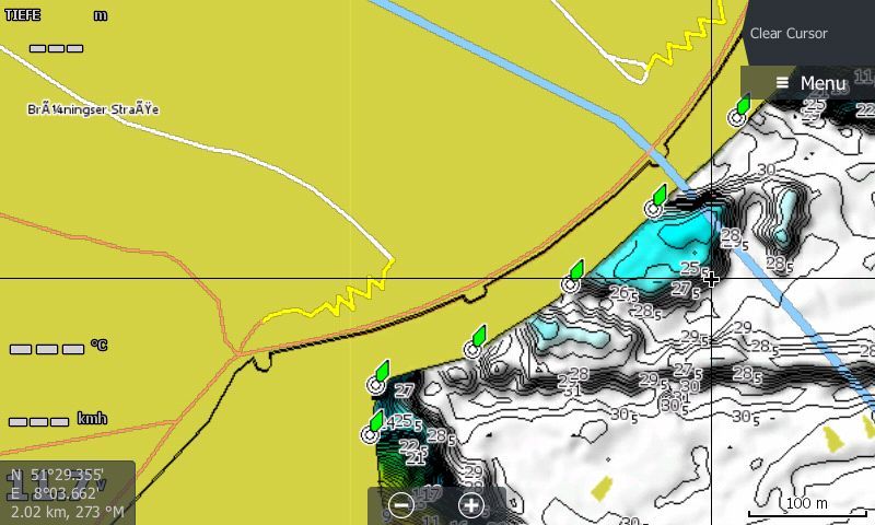 Ich habe die Tiefenfarben der Karte in qGIS angepasst, habe Schongebiete in der Karte und eine Hintergrundkarte von Wolfgang.