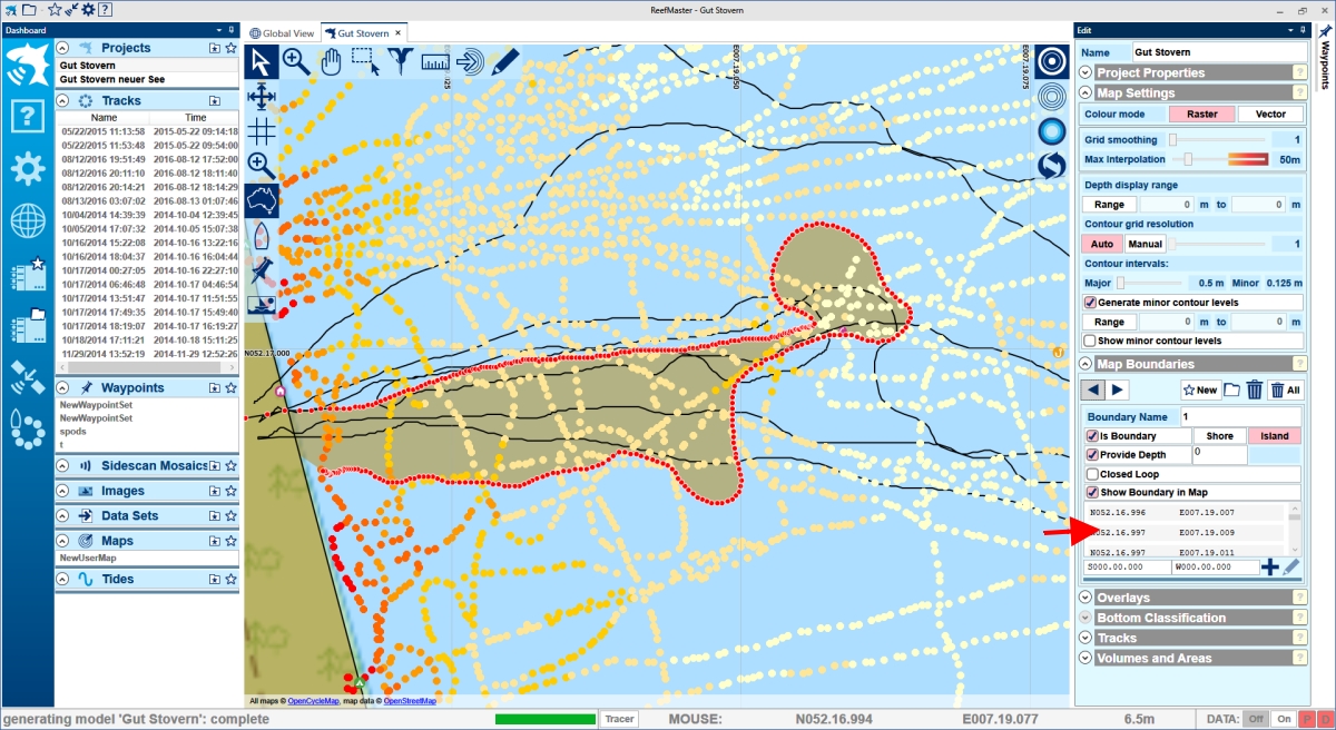 du hast die Trackdaten als Ufer/Inseln gekennzeichnet/importiert.