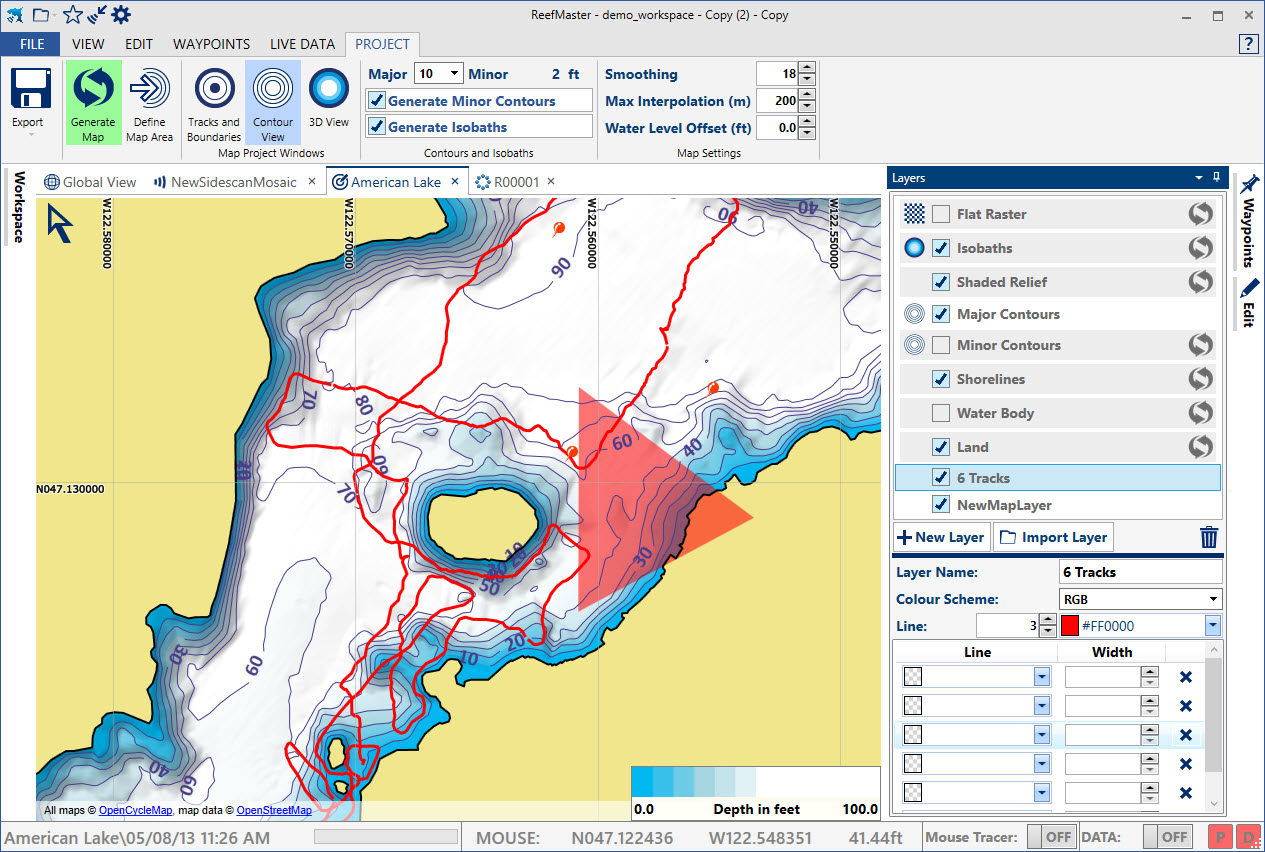 Fähigkeit, bathymetrische Karten aus Trackprotokollen zu erzeugen, die nun einen Satz von
