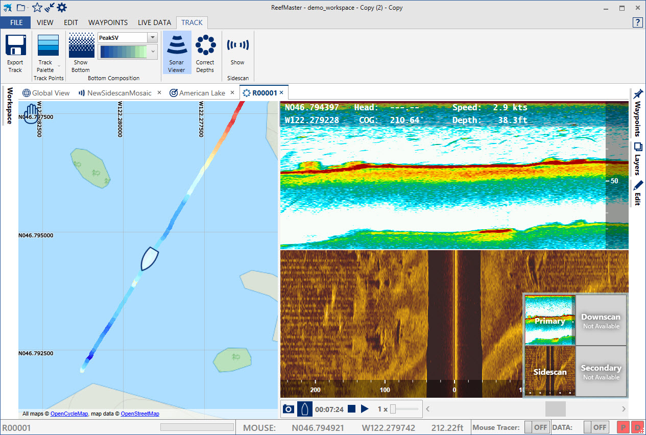 Die Sonar-Viewer-Komponente in ReefMaster basiert auf der gleichen Grafik-Engine wie in der