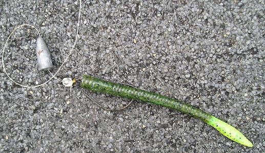 Nachdem ich beim Maifieber 2010 - Treffen die Texas und Carolina-rig Methoden erlernt habe wollte ich die natürlich auch bei mir am Fluss testen. Also Blei montiert, Vorfach , Widegap Haken an geknotet, Worm aufgezogen und ab ging es.