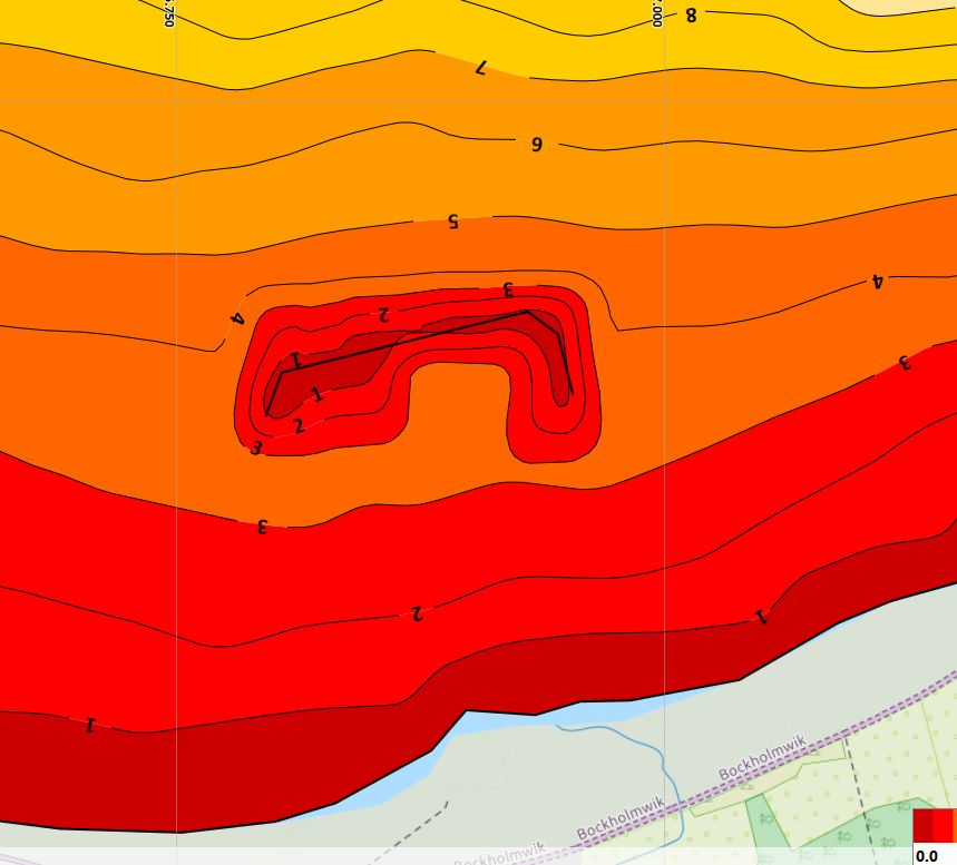 Die Grafiken sind ein Beispiel aus Bockholmwik mit dem Wellenbrecher als Island und als Shoreline zum Vergleich.