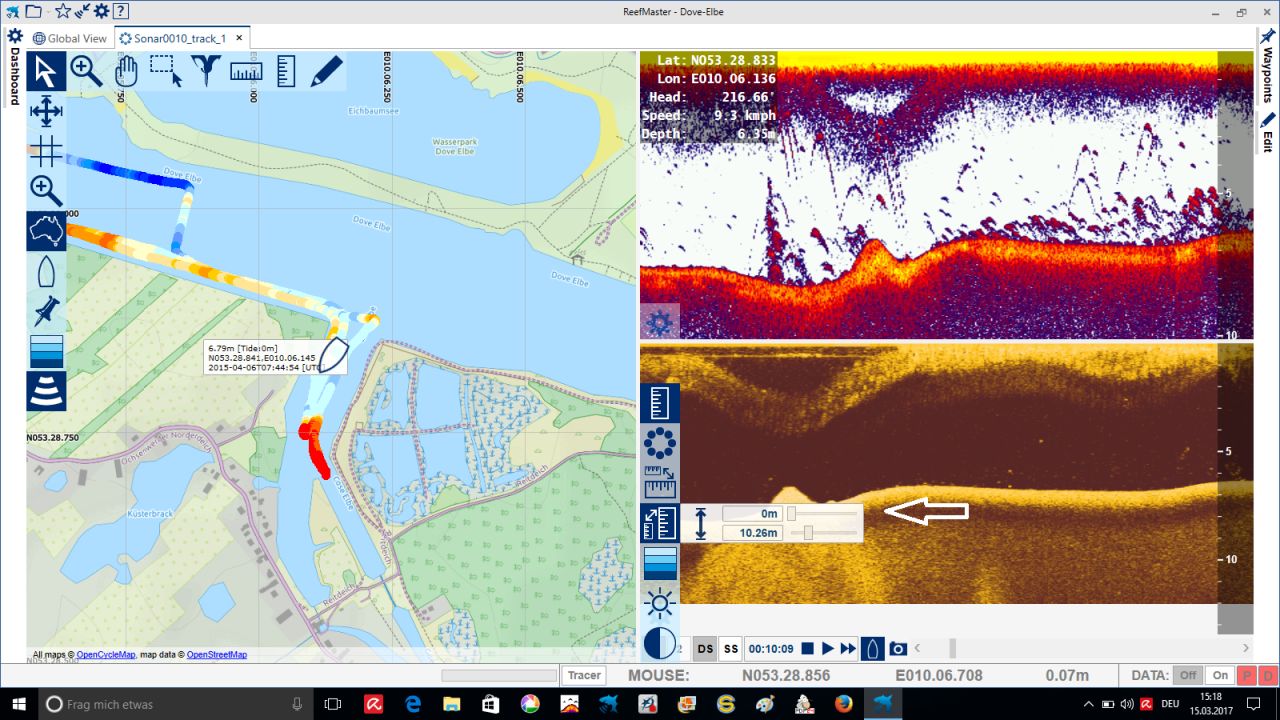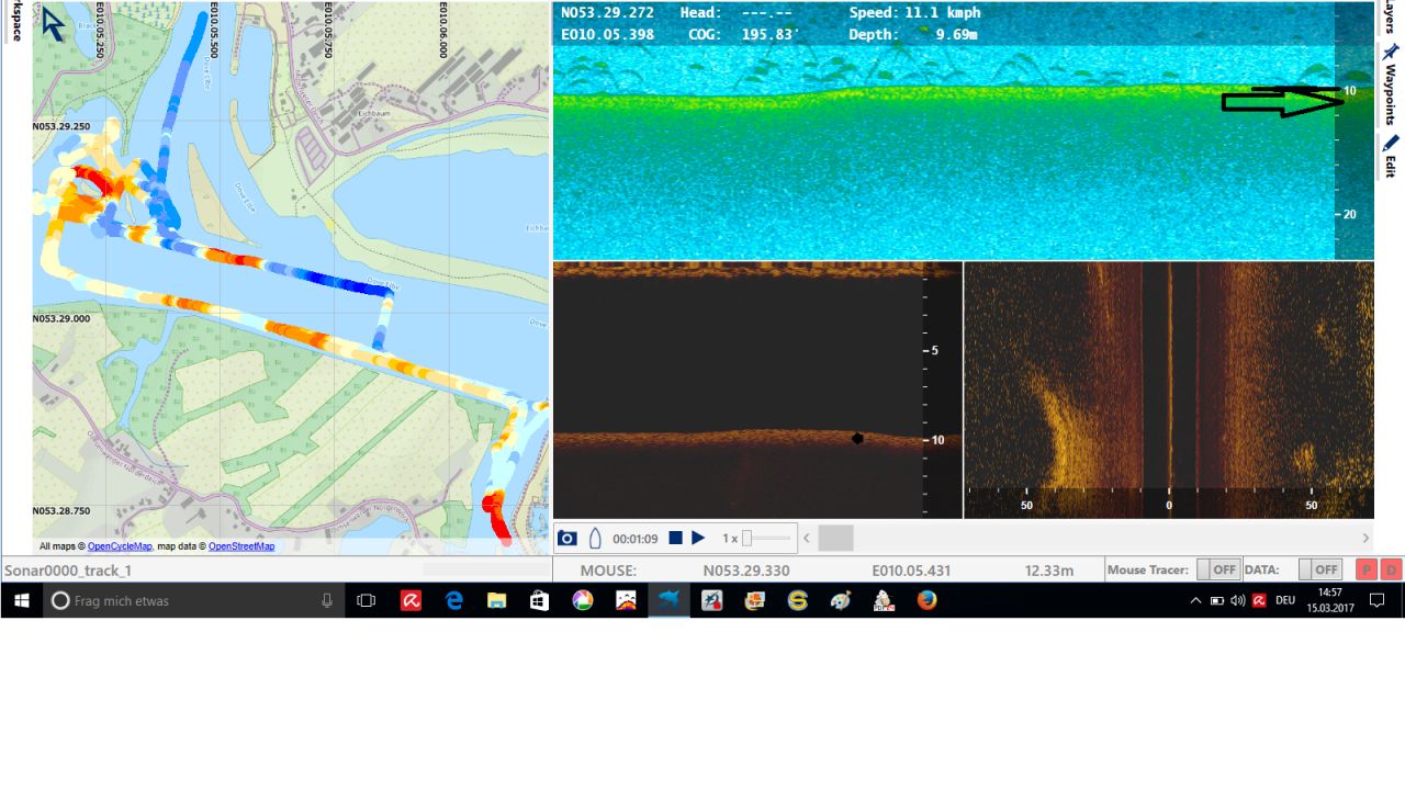 Es es so, wenn ich mir die Sonardaten ansehe, finde ich die Einstellungen