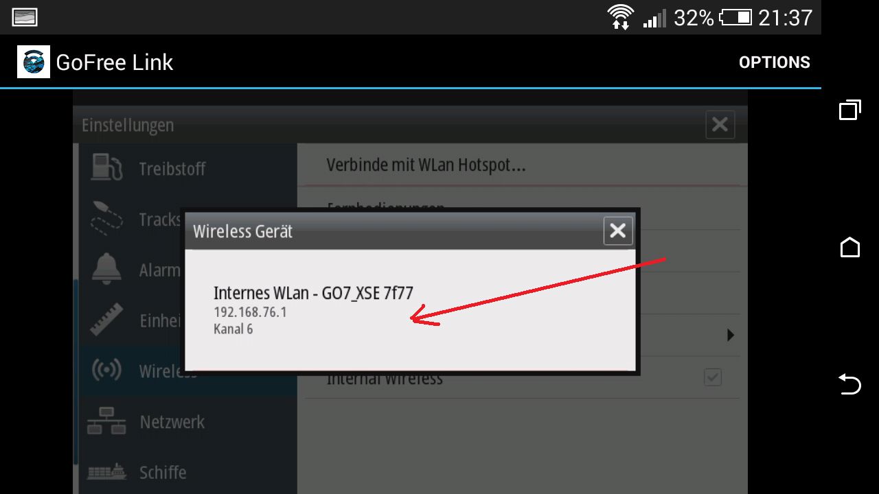 Simrad, internes WLAN als Access-Point geschaltet, Go-Free-Link App auf dem Smartphone oder Tablet installiert, jetzt verbinden...
