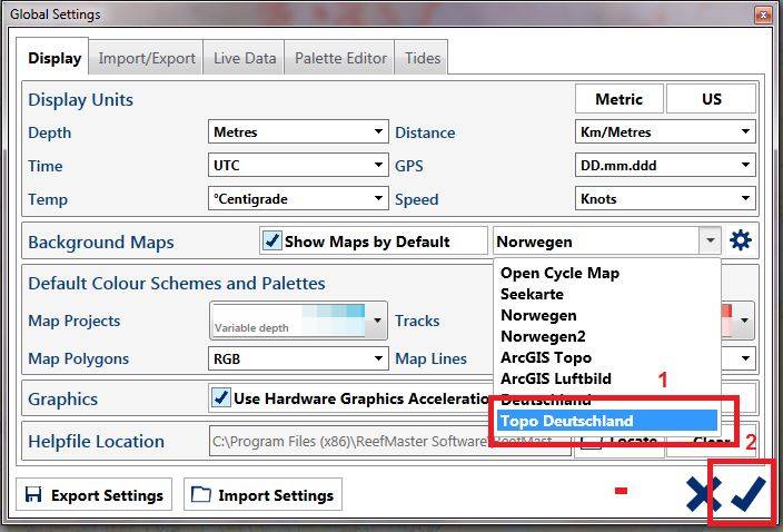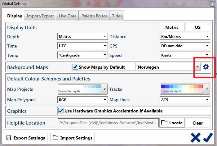 Verwechselt du vielleicht die Einstellung der Track Palette mit der Stelle wo man die Farben der Isobaths und somit der Map ändern kann?