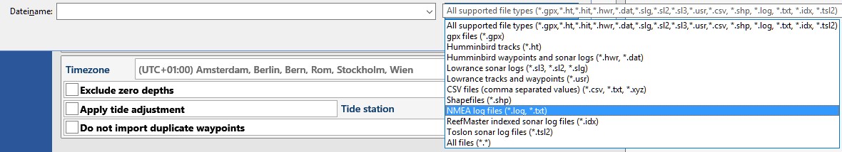 • Während des Imports einer NMEA-Protokolldatei wurde ein Satzauswahlfenster hinzugefügt,