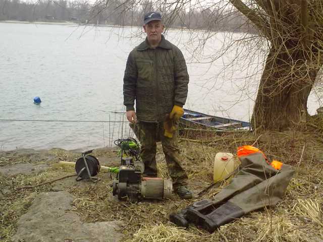Ja das grüne ist ne Pumpe und das ding vorne dran ein Aggregat . Das war ne prima Sache mit der Pumpe , denn das Boot war voll mit Schlamm so konnte ich nicht nur das Boot aus pumpen sondern auch noch gleich abspritzen dass es einiger masen sauber wird !