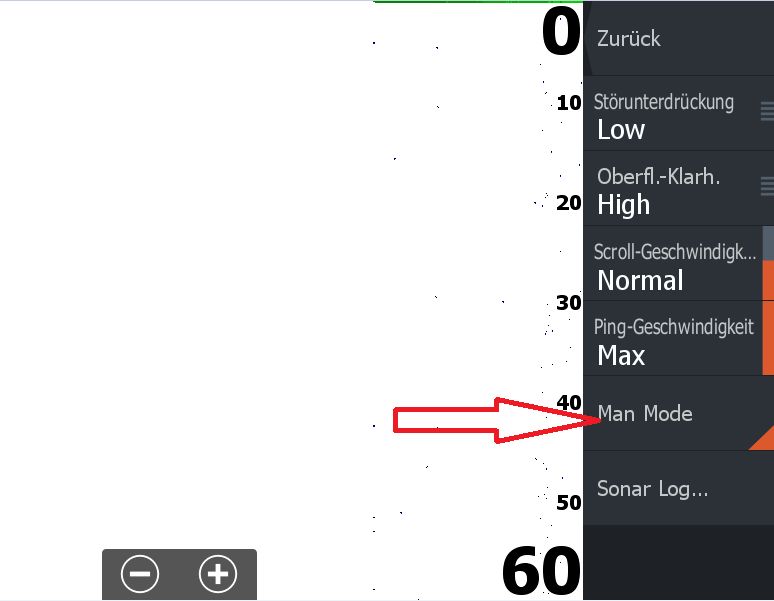 Bei den Sonareinstellungen "Fischereimodus" gibt es ja keinen manuellen Modus. Bei mir im Handbuch steht bei den Sonareinstellungen - Fischereimodus "Fischfang-Modus zurücksetzen" Diese Funktion kann ich jedoch nicht finden.