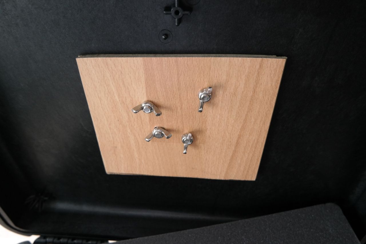 Habe einen 8er Bohrer genommen und durch den Koffer unten am Boden durchgebohrt, Kabel sitz ziemlich stramm in der Bohrung.