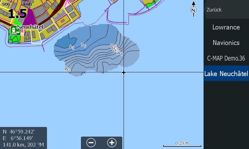 • My/Mein Echo Equipment: Simrad GO7 XSE mit TotalScan-Geber und Navionics+ Karte, Lowrance Mark5X Pro mit 83-200-Geber, ein 500g-Senklot mit 100 Meter Maurerschnur