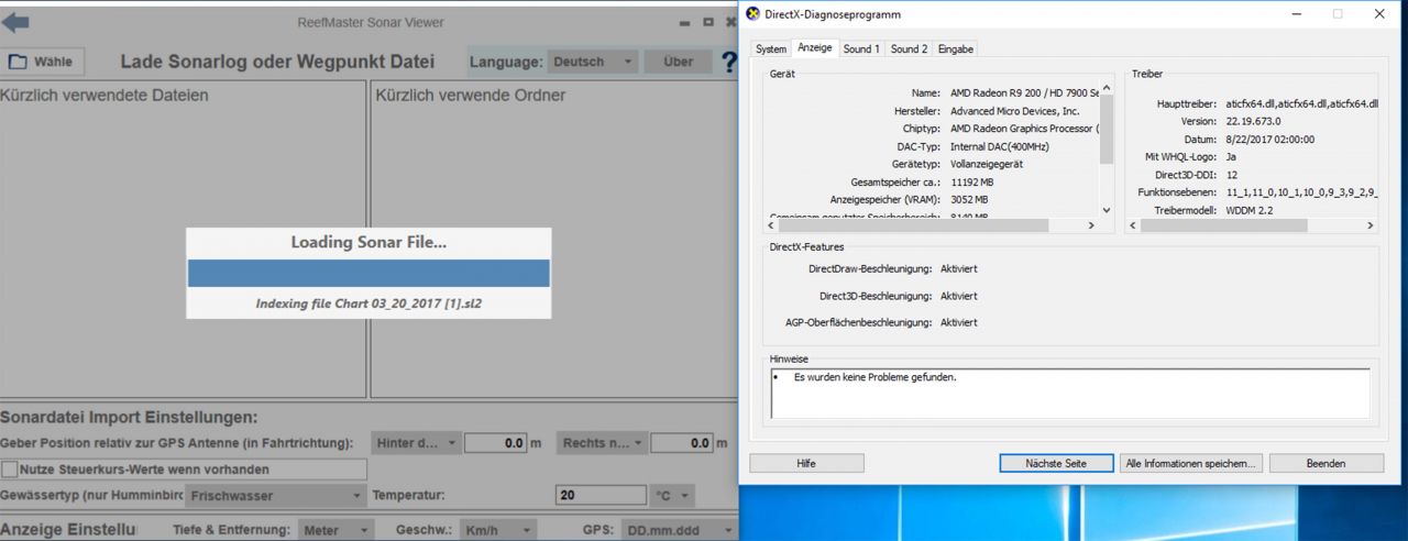 Wenn ich das Programm anklicke kommt dann die Meldung "ReefMasterSonarViewer reagiert nicht.