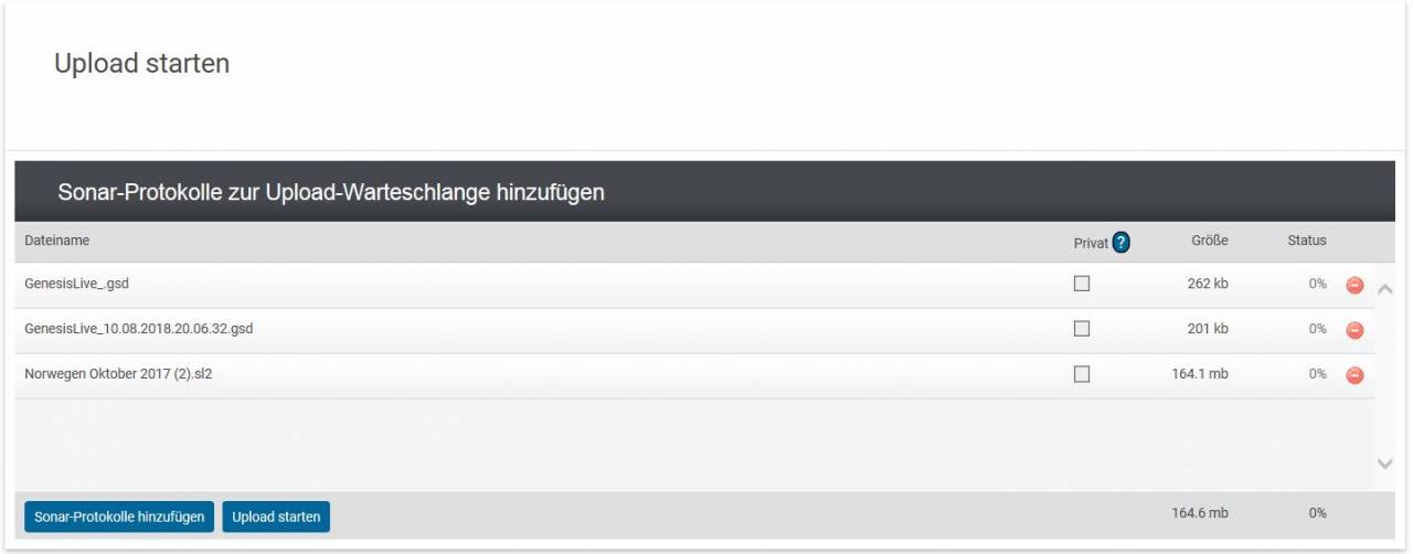 Man kann in der Übersicht der Logfiles diese auswählen und manuell hoch laden. (Man beachte das Cloud Symbol)