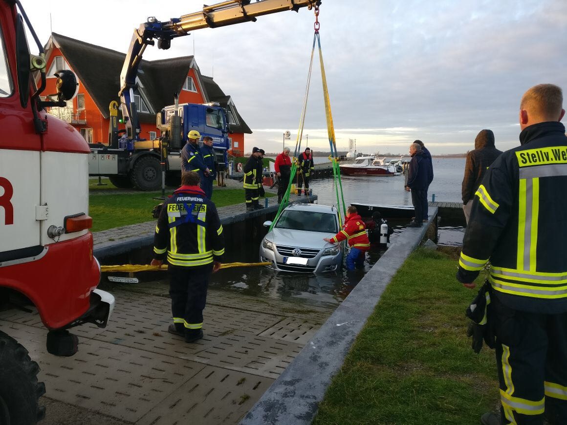 mit Schwung in das Hafenbecken. Der PKW war bei