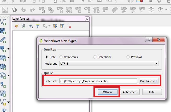 mit den Tiefenlinien also z. B. „See xyz_Major contours“ die aus 4 Dateien mit