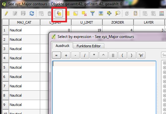 Nach Klick ist dann nichts mehr selektiert. Mit dem Feldrechner wird in
