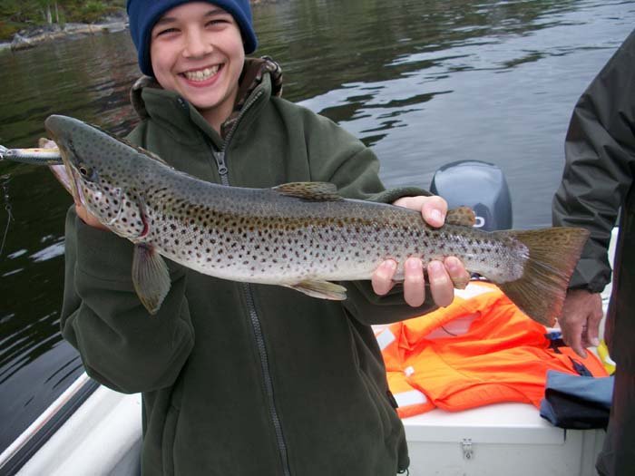 Das KLICK HIER ist der Vermieter bei dem wir auch immer unseren Urlaub verbringen. Klasse Typ, super Boote und Häuser und vor allem Fisch in jeder Variante. Was besonders wichtig ist: man muß nicht stundenlang mit dem Boot zum Fisch fahren und kann im Fjord bequem auf max 30-50m Tiefe angeln. In der Flussmündung des Namsen sogar mit 10g-Jigs in 6-10m Wassertiefe auf Dorsch, Schellfisch und Wittling.Außerdem besteht durch die Flussmündung immer eine richtig gute Chance Meerforellen oder gar Lachse zu fangen. Tobi hat´s vor drei Wochen vorgemacht.Siehe Bilder: