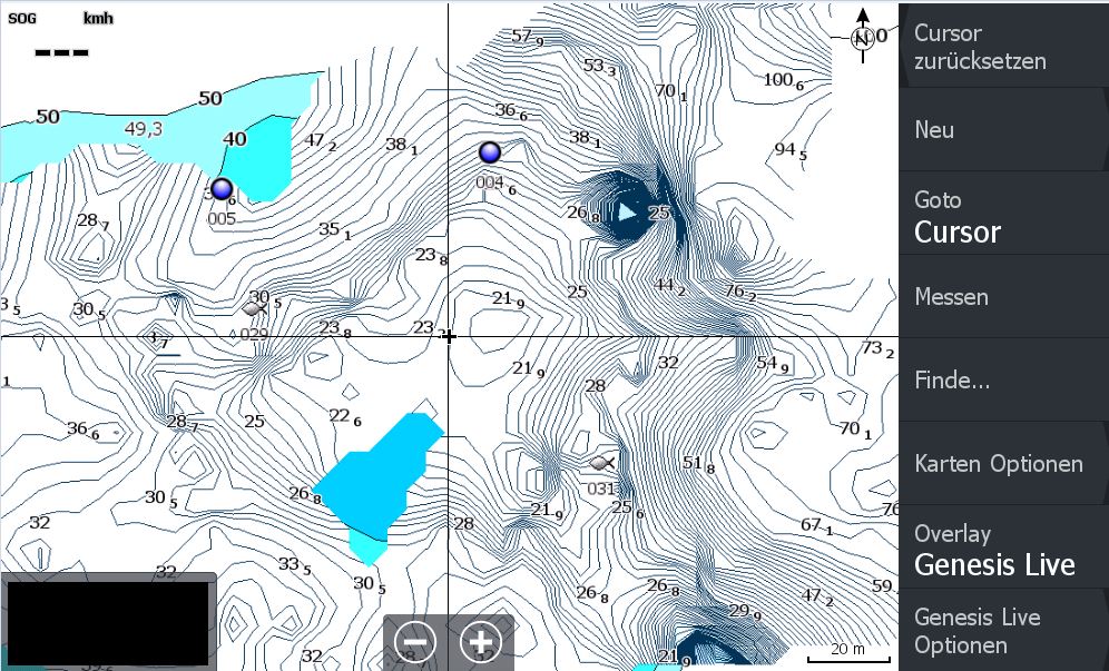 Was Genesis Live Charting positiv von Navionics Sonarchart Live unterscheidet - die mitgeschnittenen Karten als Overlay benötigen keinen GPS-Fix zur Betrachtung, ein angeschlossener Schwinger ist ebenso nicht erforderlich. Also kann man sich diese notfalls zu Hause im Keller anschauen.