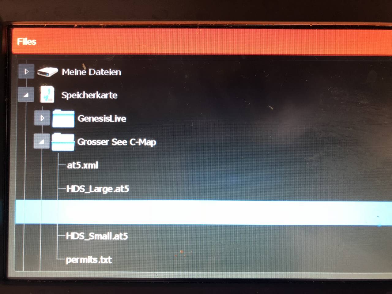 Das erste ist ein Ausschnitt von der Sd Karte. Da ist eine Karte von Genesis „grosser See „ also müsste folglich in den Karten Optionen eine Karte auszuwählen sein die grosser See heißt. Ist es aber nicht siehe 2es Bild.