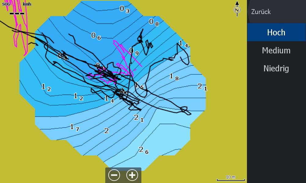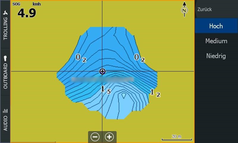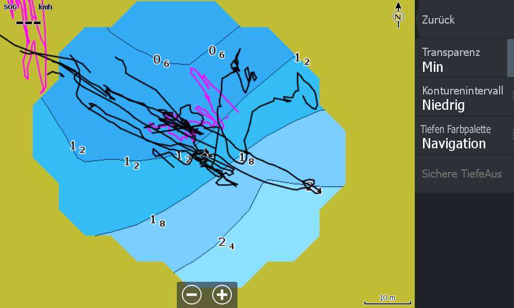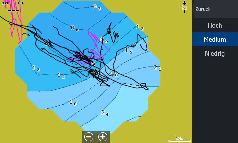 Medium: Tiefenlinien in 1 Fuß, ca. 30 cm Abstand.