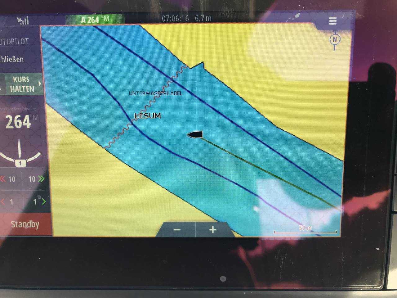 COG und HDG waren dann auch nur noch 5-6° unterschiedlich.