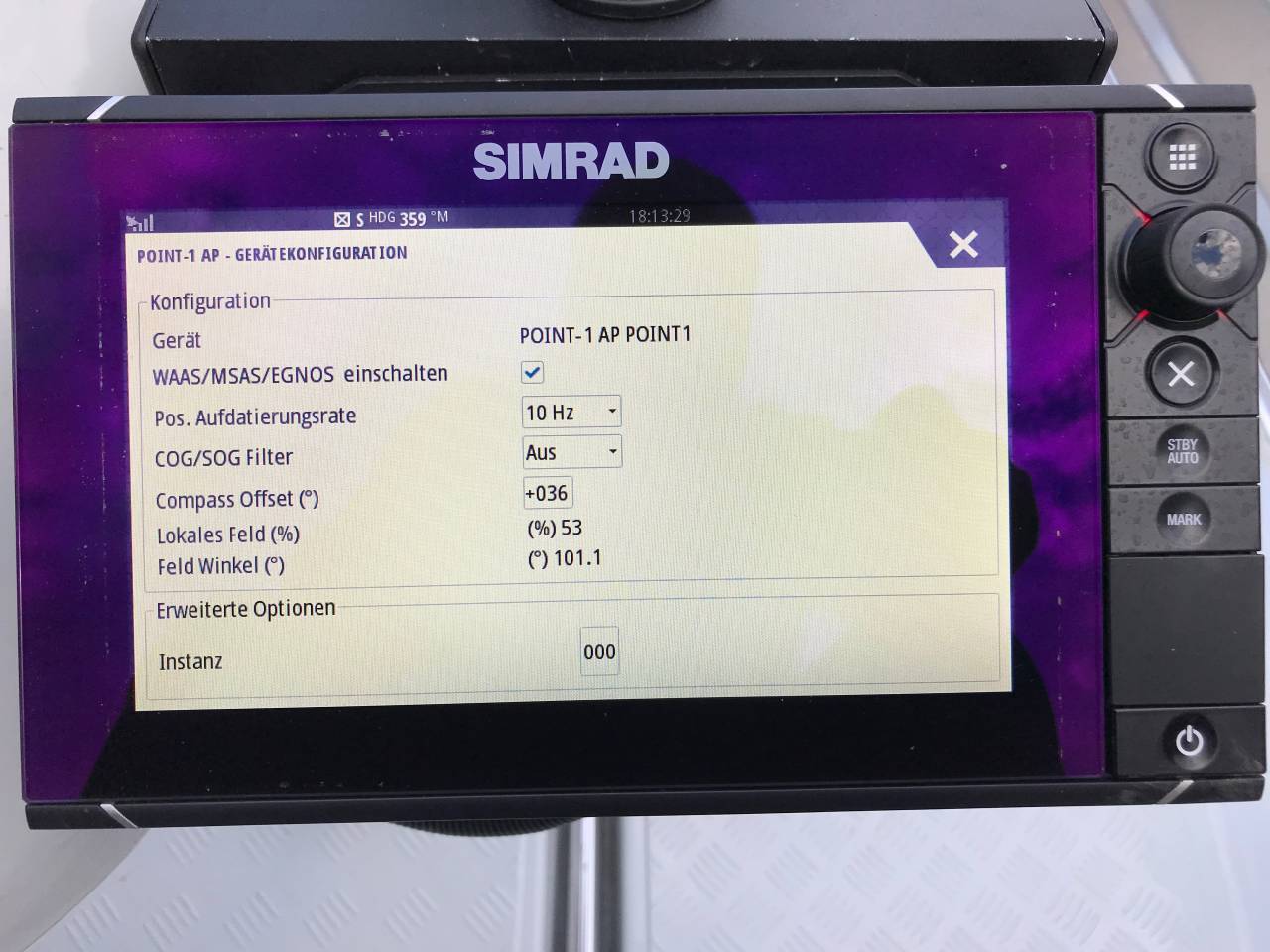 Bitte stell bei Ansicht mal Kursverlängerung ein für COG und HDG und fahre in einen Windstillen und Strömungsfreien Bereich mal geradeaus und mach einen Sceenshot und schick das mal rüber.