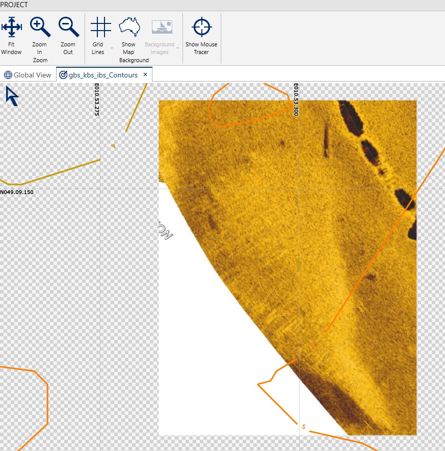 Ich habe die entsprechenden Tracklogs in RM eingelesen und habe auf „Show Sidescan“ geklickt, um das SI-Image anzuzeigen.