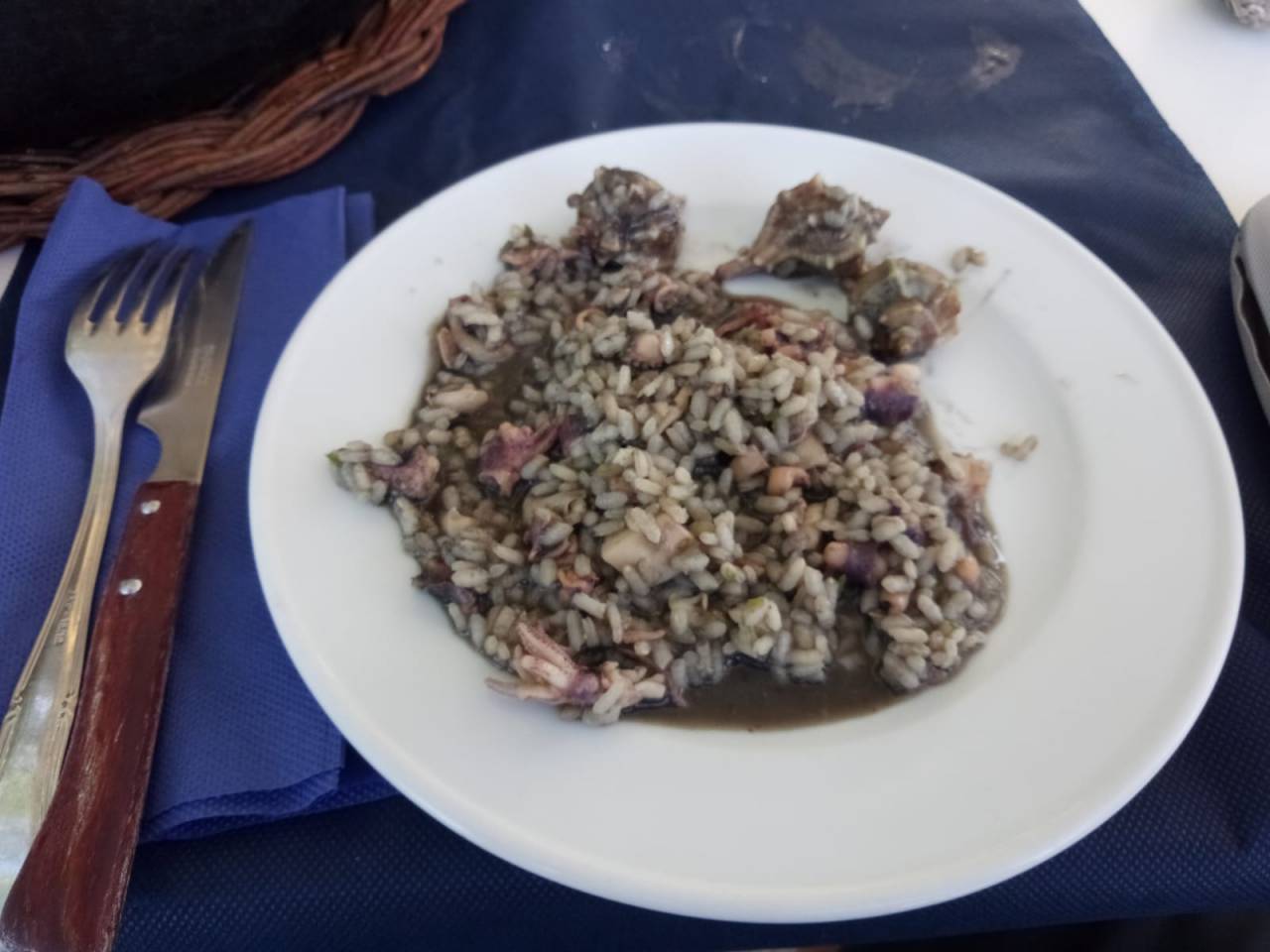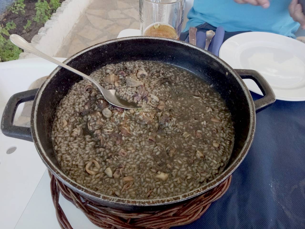 was ist denn das für essen? Schwarzer Reis? Oder so?
