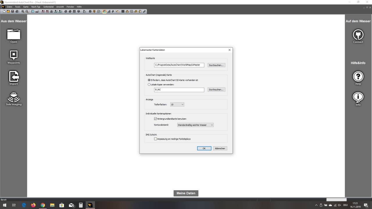 Ich habe übrigens nun das Programm auf meinen anderen PC zuhause installiert, und freigeschaltet obwohl ich auf dem Laptop bereits zwei mal Das Programm Registrieren musste, und auf dem PC kann ich nun auch wieder Daten bearbeiten und als Lakemaster  in AC1 Abspeichern.