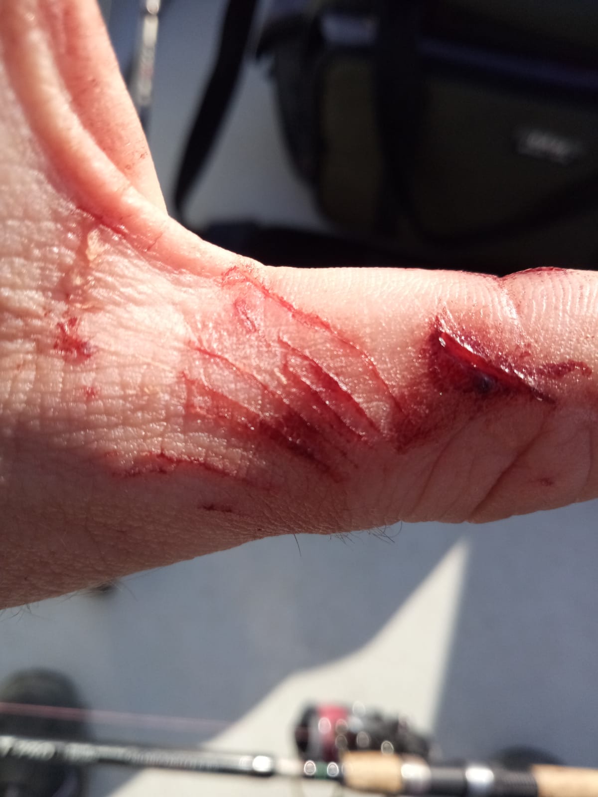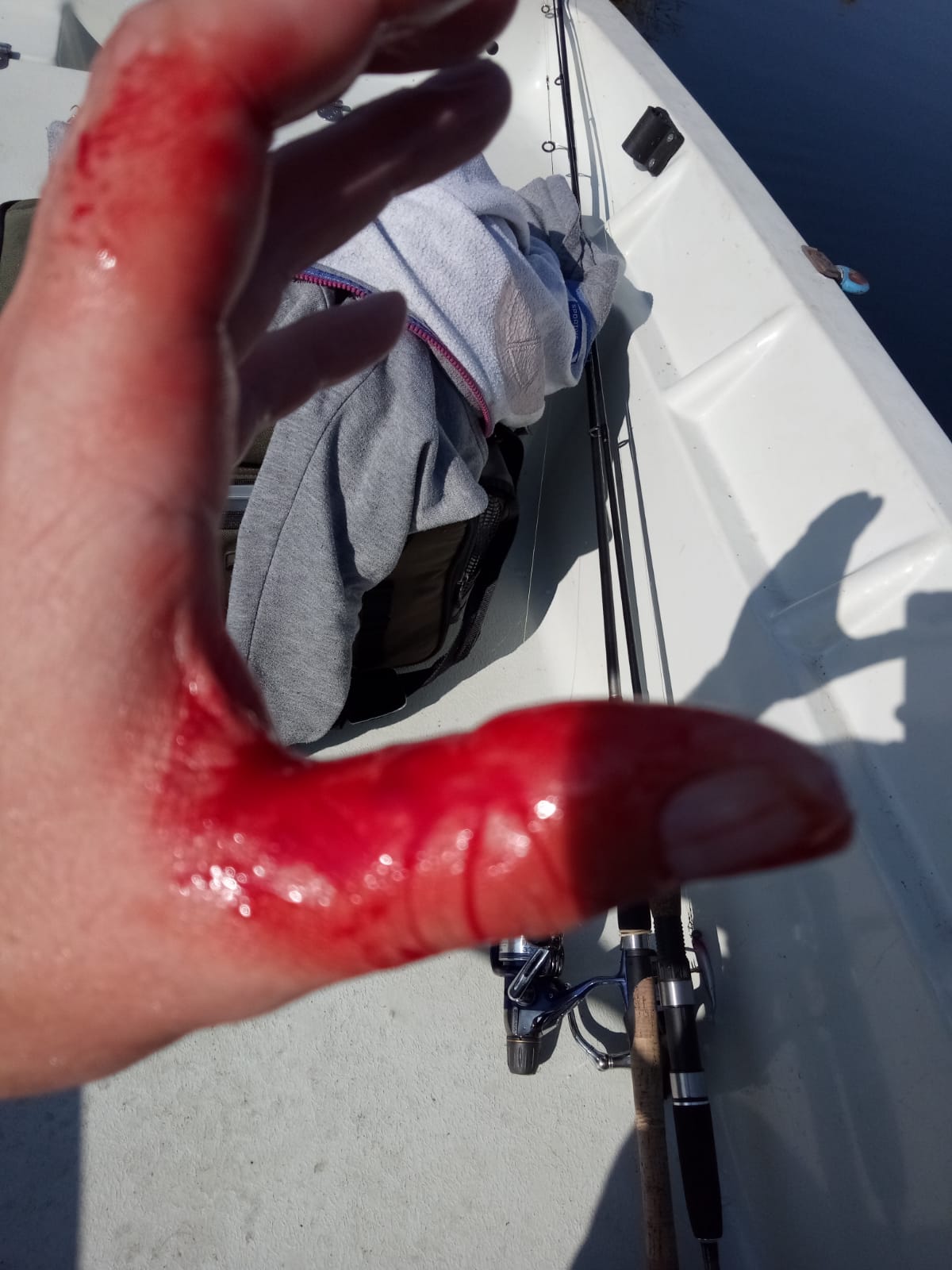 Beim Rausfummeln wollte er nen Satz machen, ich hatte die Hand gerade im Maul und so hat er