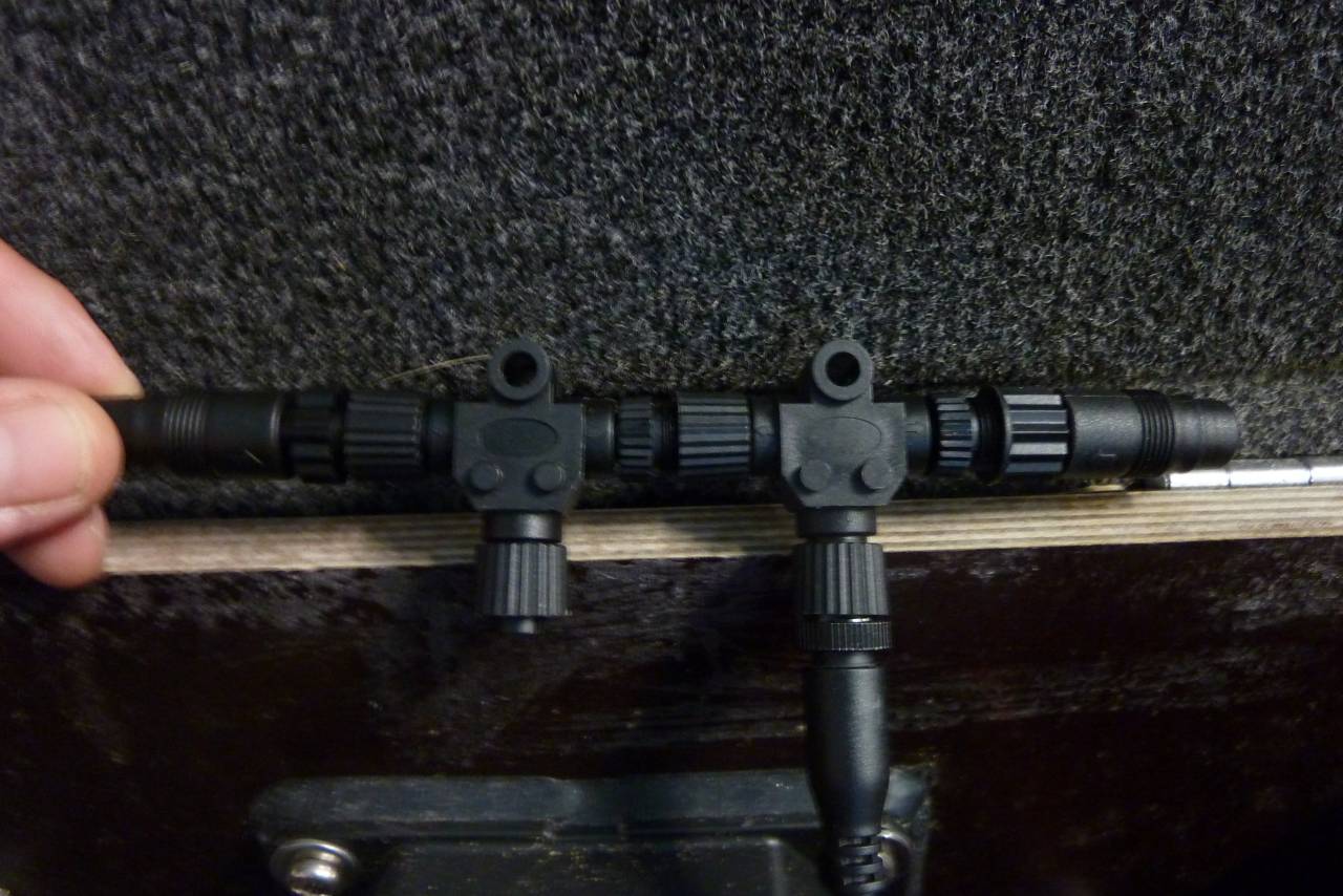 Einmal in der oberen Aufnahme die T-Connectoren hinten im Boot:
