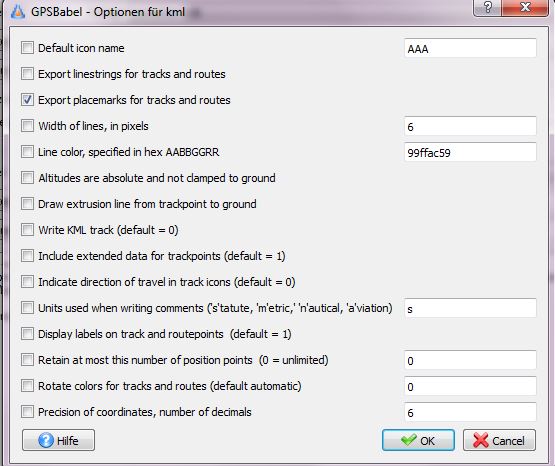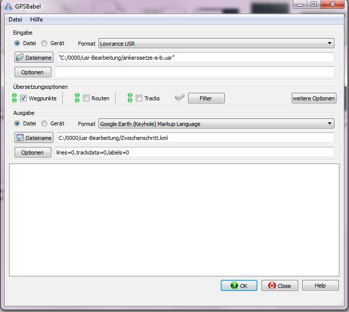 Ein solches Tool ist GPSBabel 1.5.3. Mit diesem wandeln wir die usr-Datei in eine
