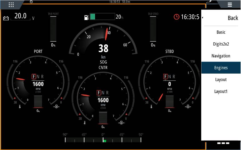 Die digitalen Werte sind ablesbar, aber bei den Instrumenten links und rechts neben den Drehzahlmessern sind keine Zahlen, nicht mal eine Skala.
